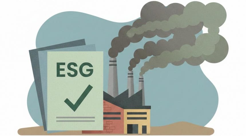 esg scores misleading investors illustrated as sustainability claims on paper hiding real environmental impact